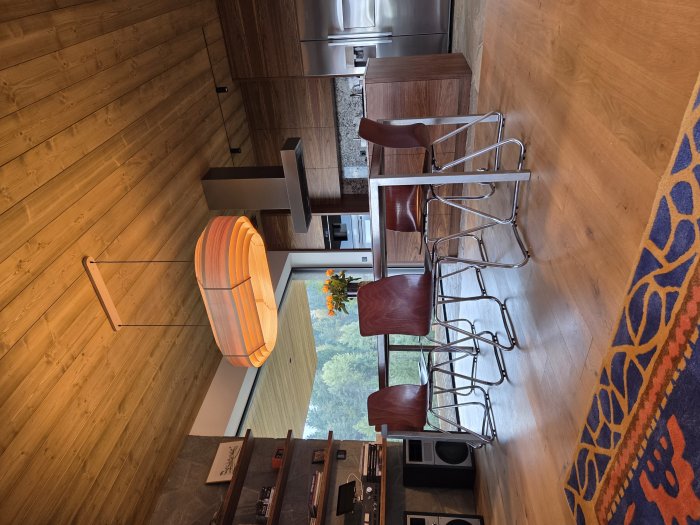 Ze względu na swój rozmiar i mocny charakter najlepiej prezentuje się w dużych pomieszczeniach a jej podłużny kształt czyni ją idealnym oświetleniem stołu jadalnego.
